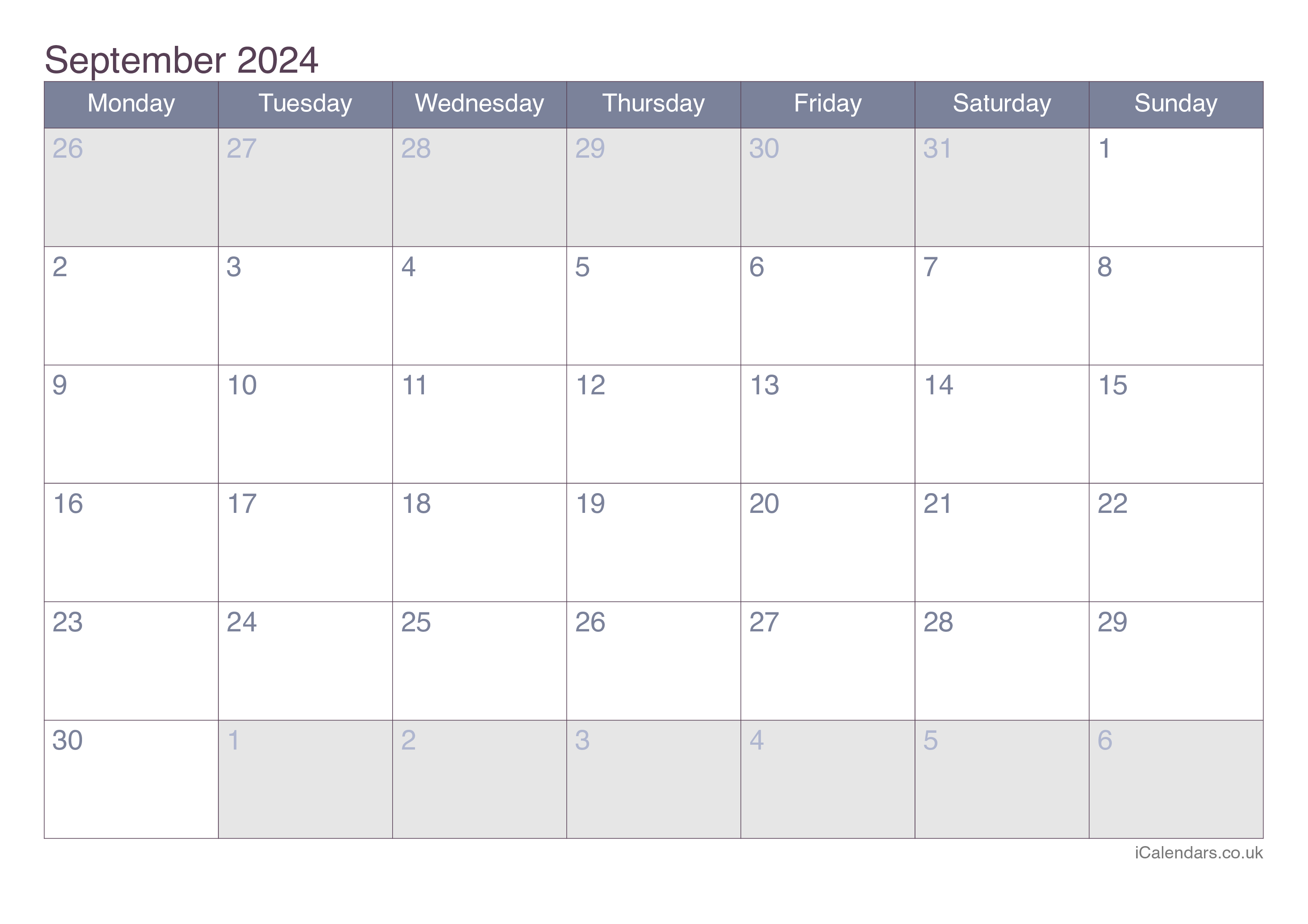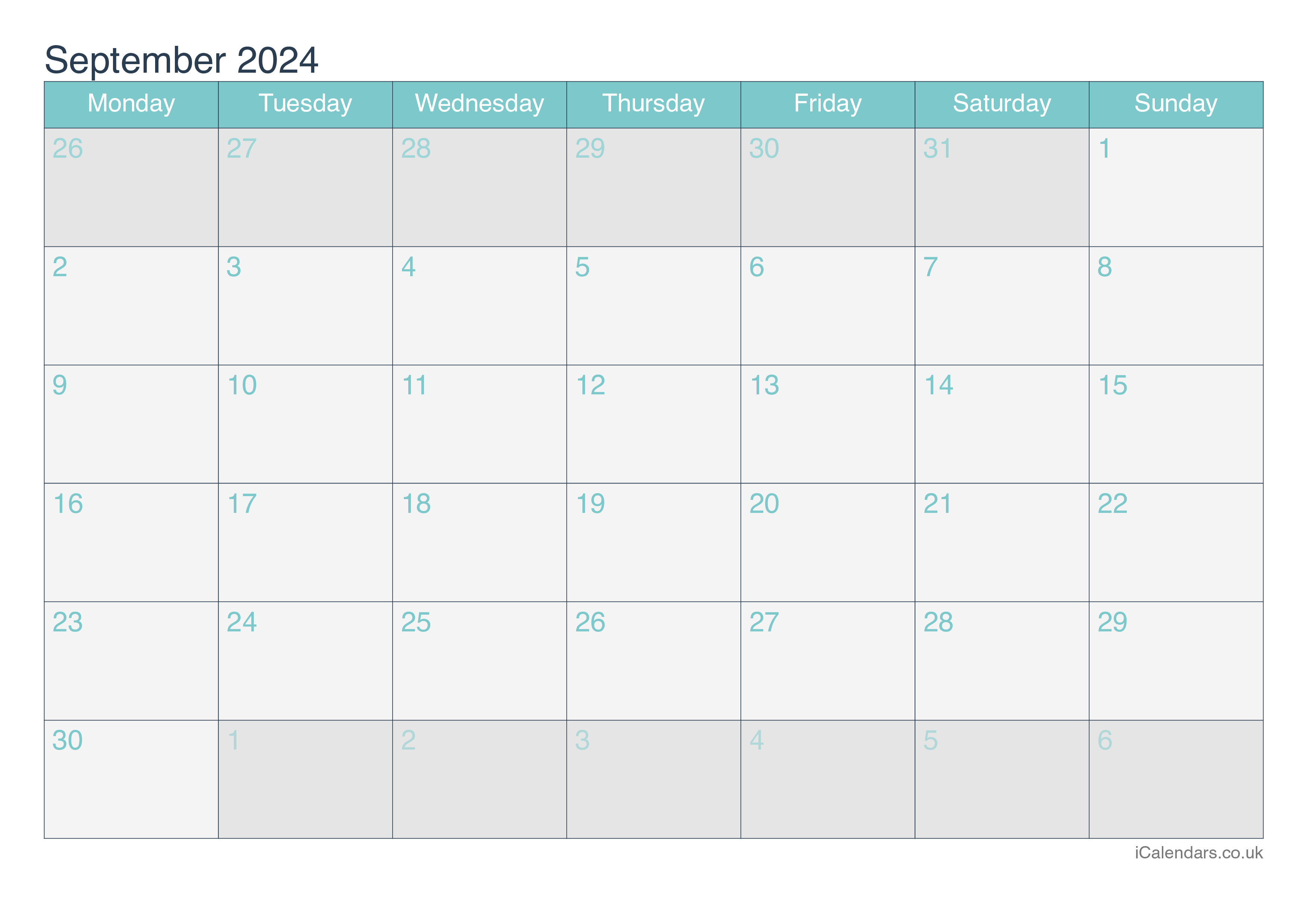 You can download and print this September 2024 calendar. It is available as an image, or in PDF and Excel formats. You can choose one of the 4 colour themes.