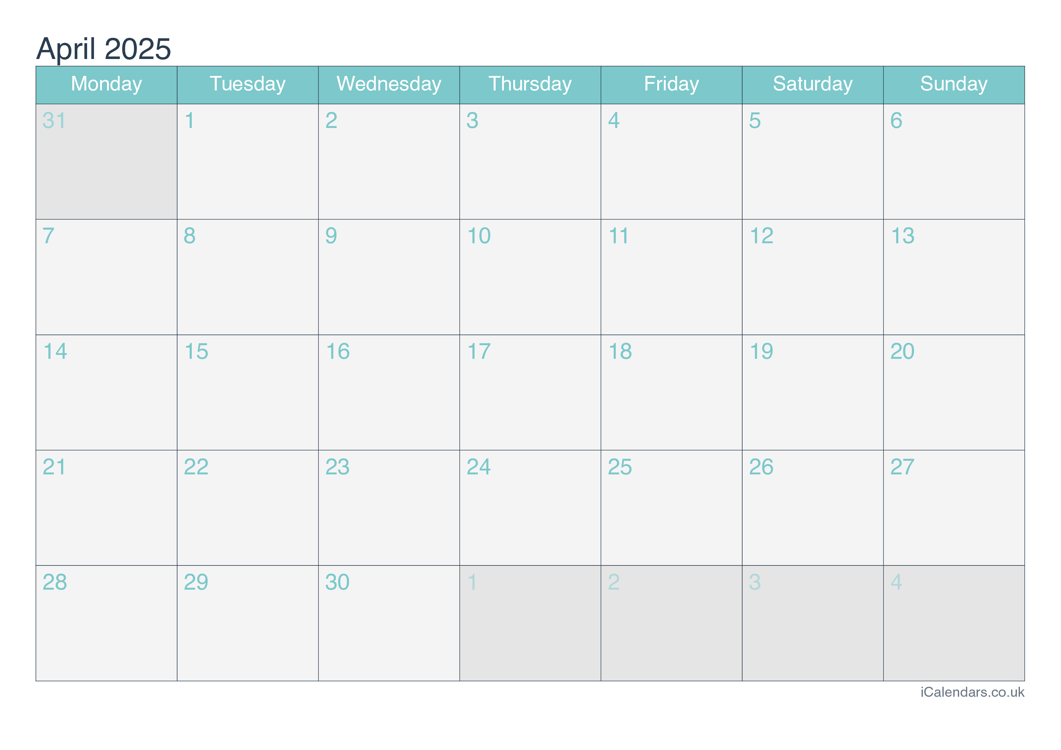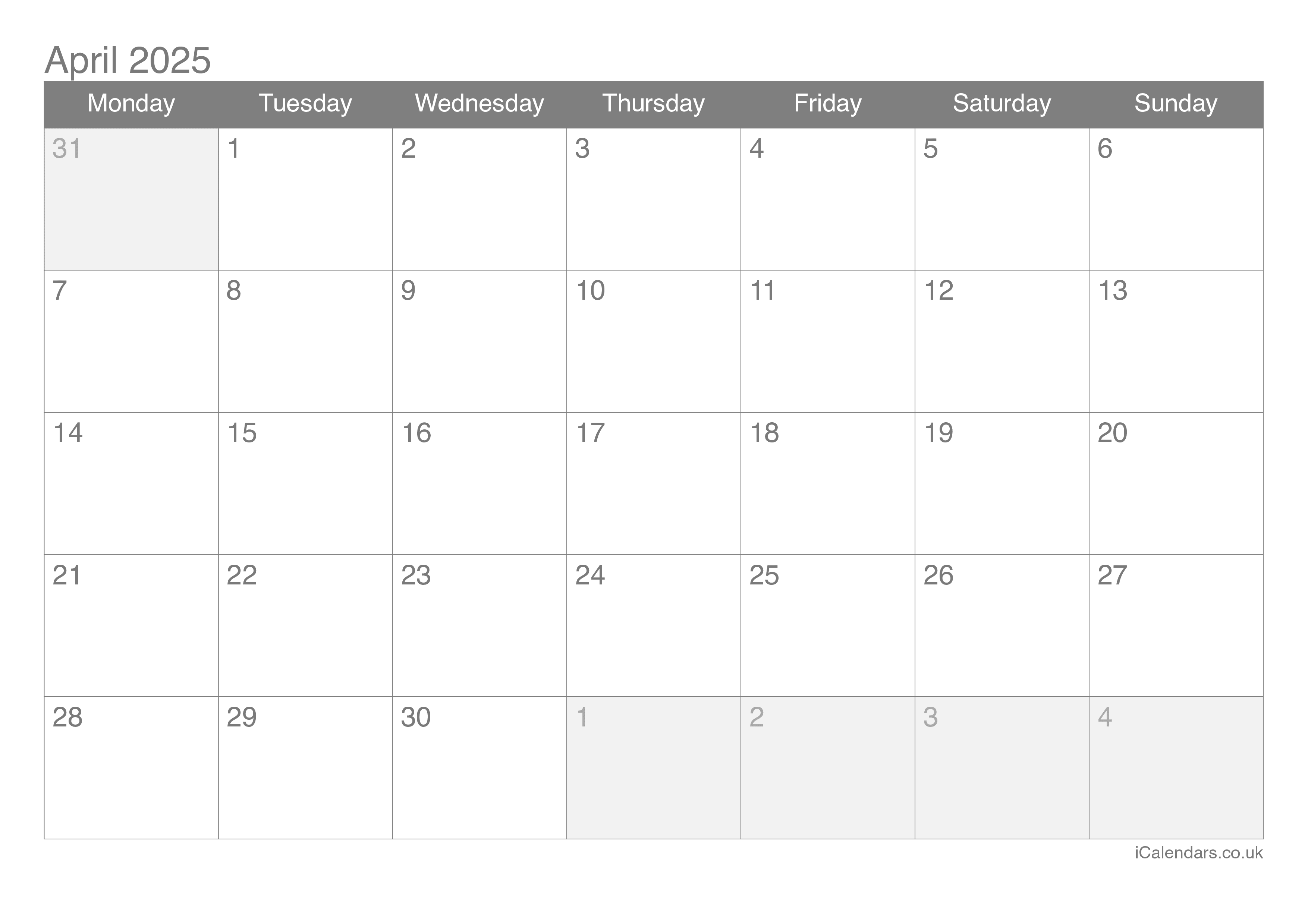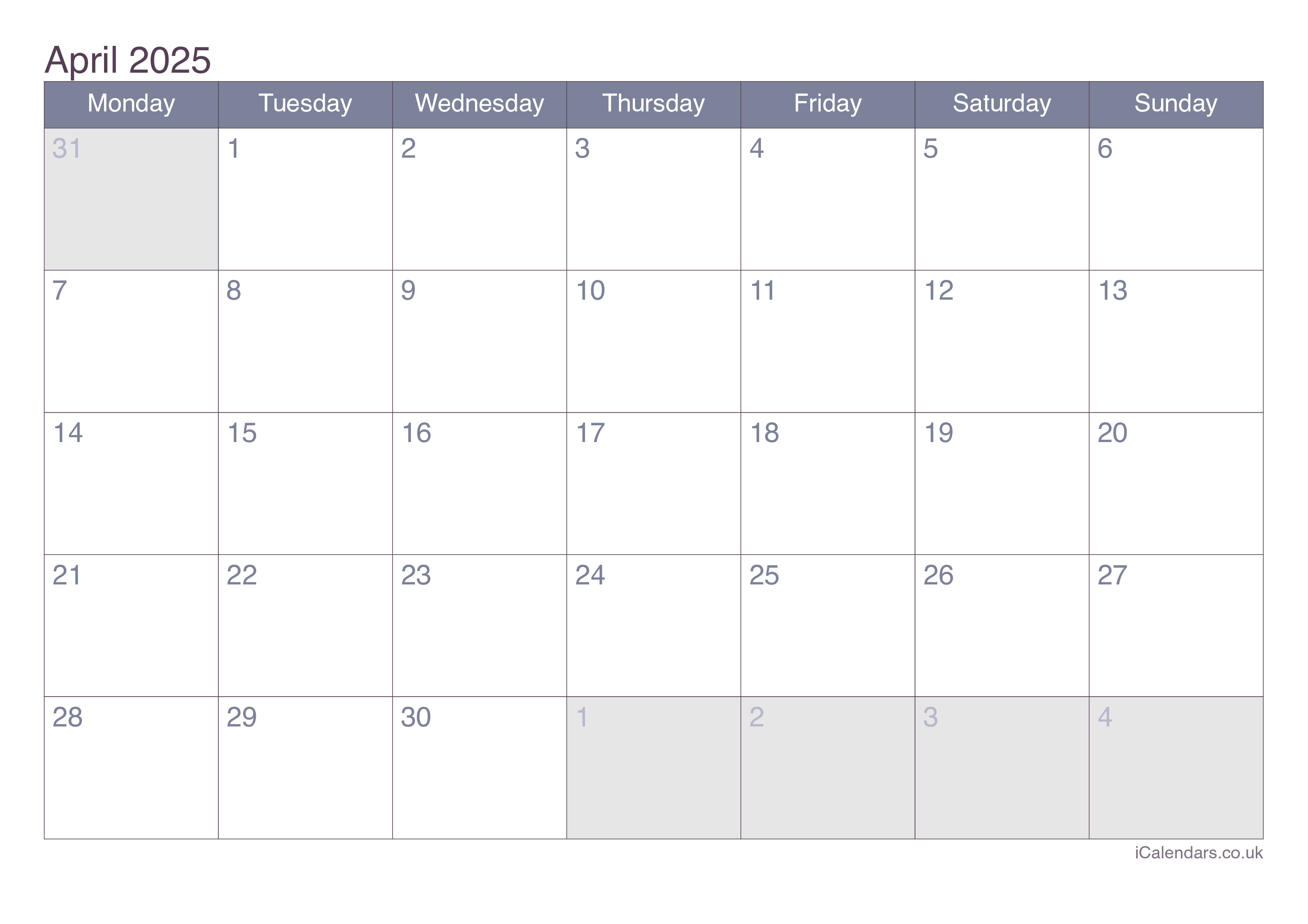 April 2025 Printable Calendar