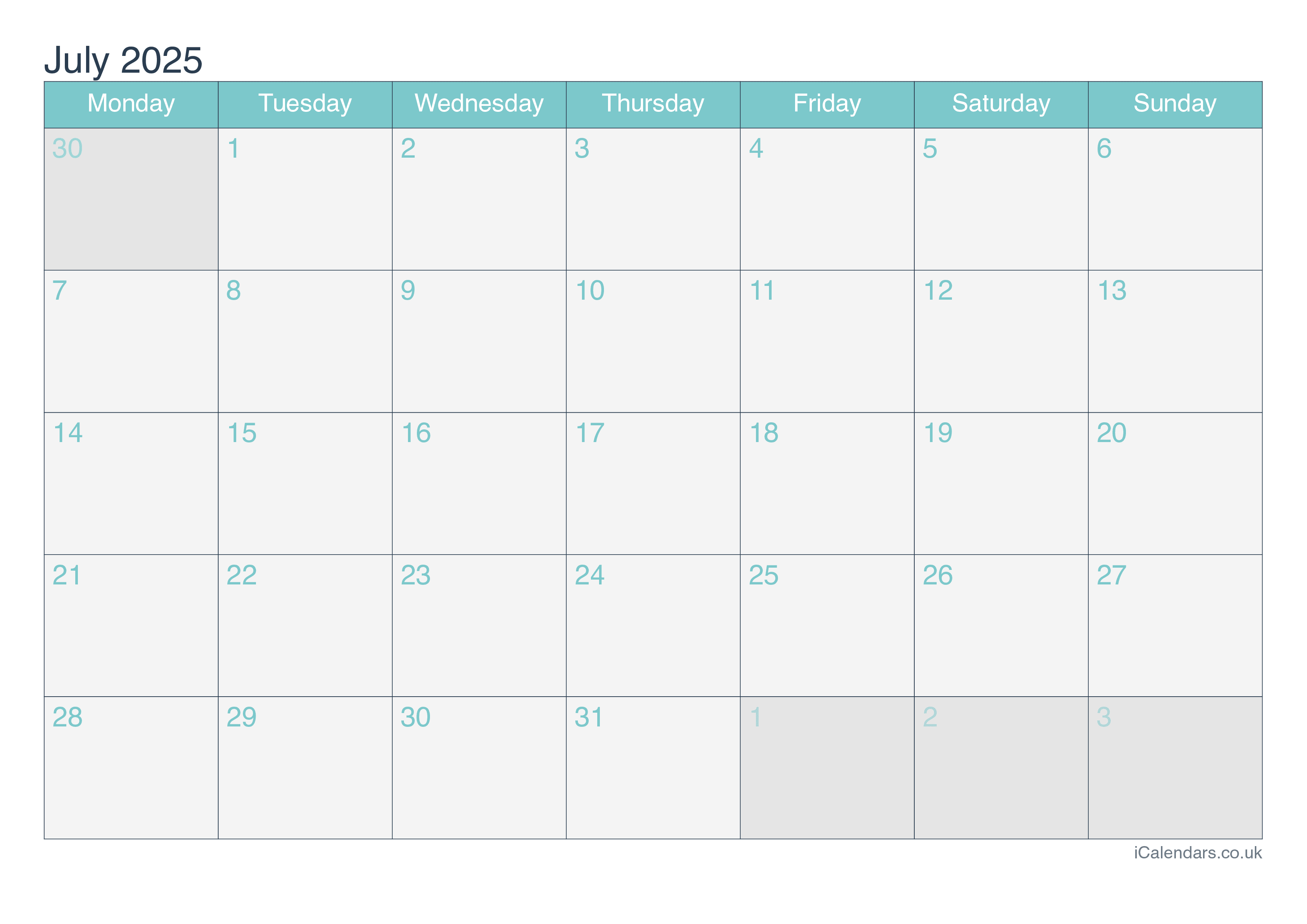 You can download and print this July 2024 calendar. It is available as an image, or in PDF and Excel formats. You can choose one of the 4 colour themes.