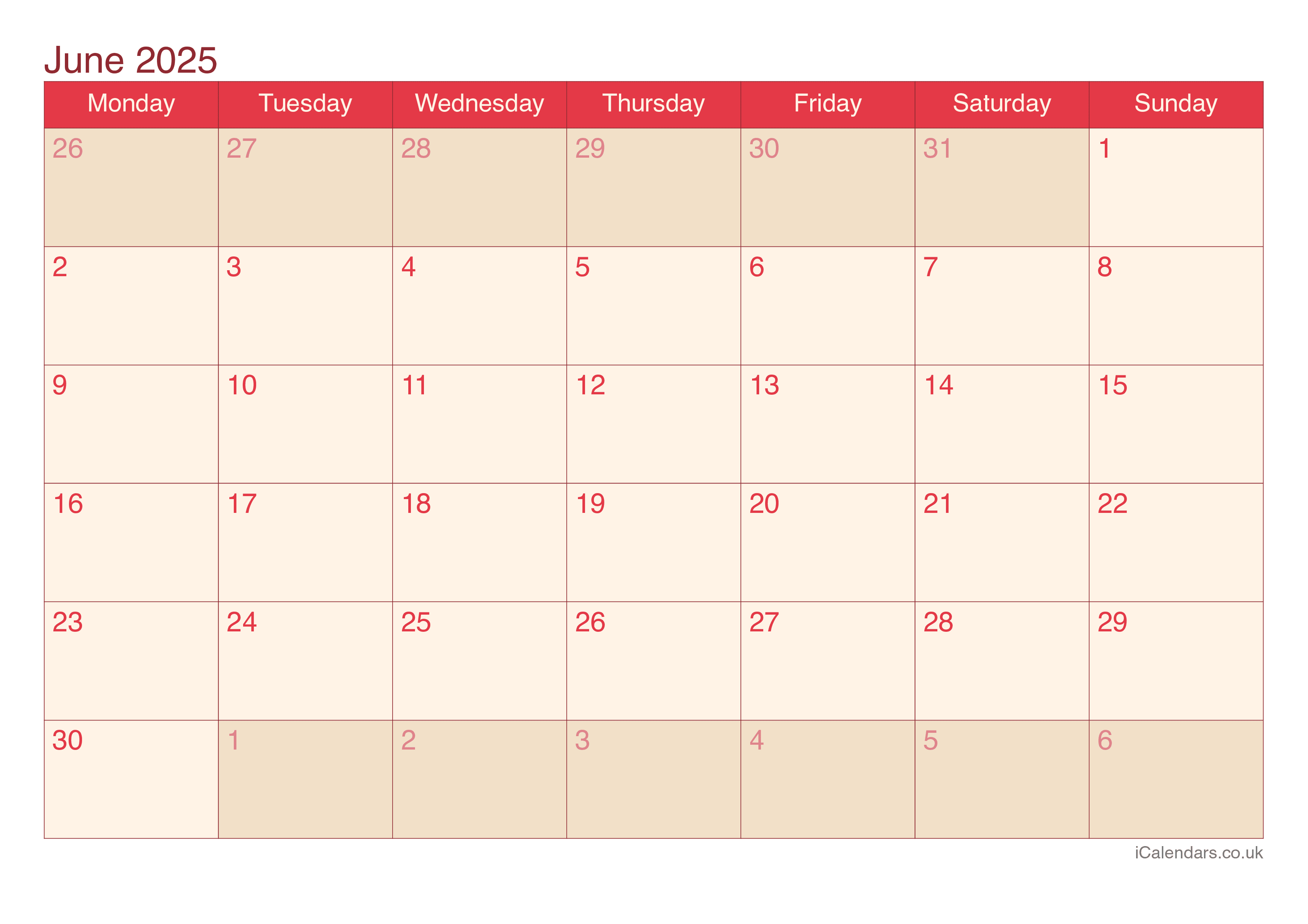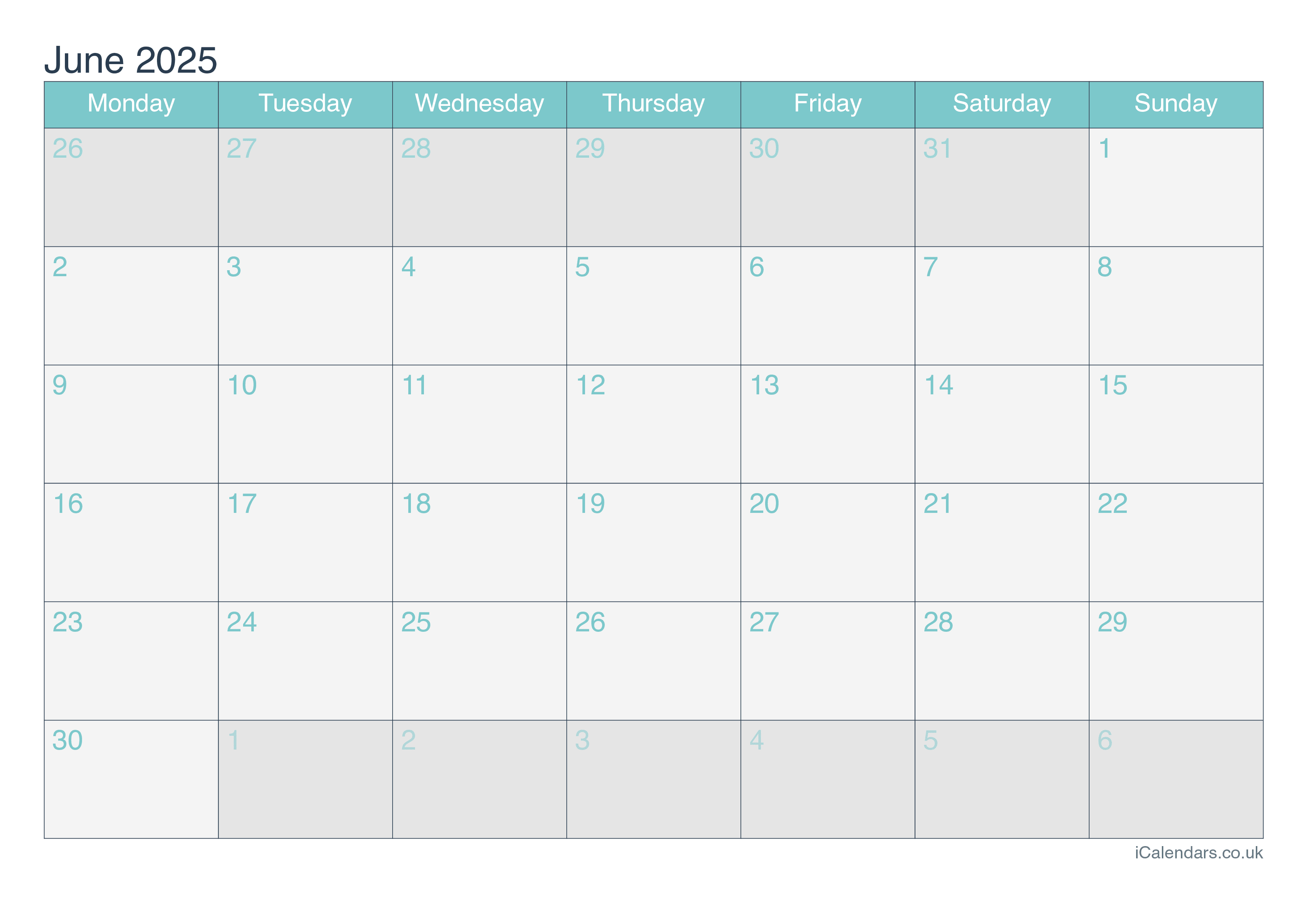 You can download and print this June 2024 calendar. It is available as an image, or in PDF and Excel formats. You can choose one of the 4 colour themes.