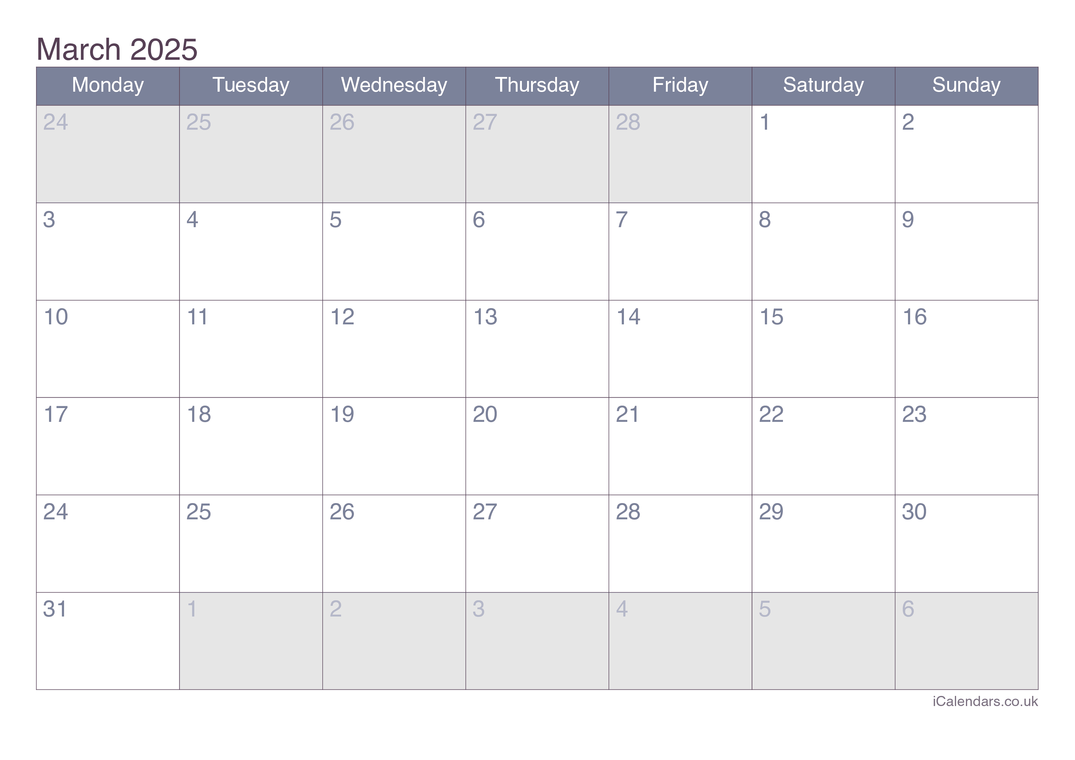 March 2025 Printable Calendar