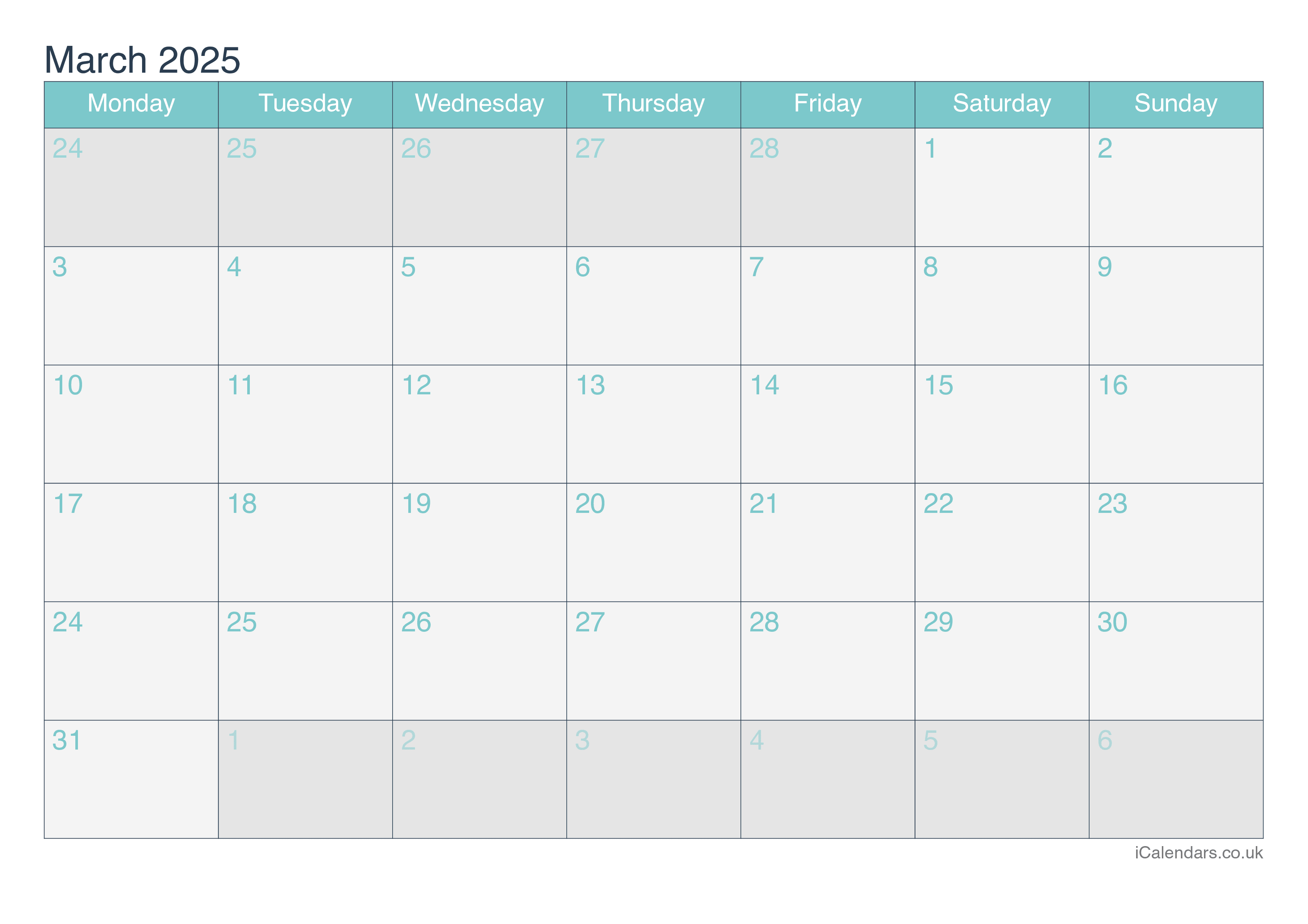 You can download and print this March 2024 calendar. It is available as an image, or in PDF and Excel formats. You can choose one of the 4 colour themes.