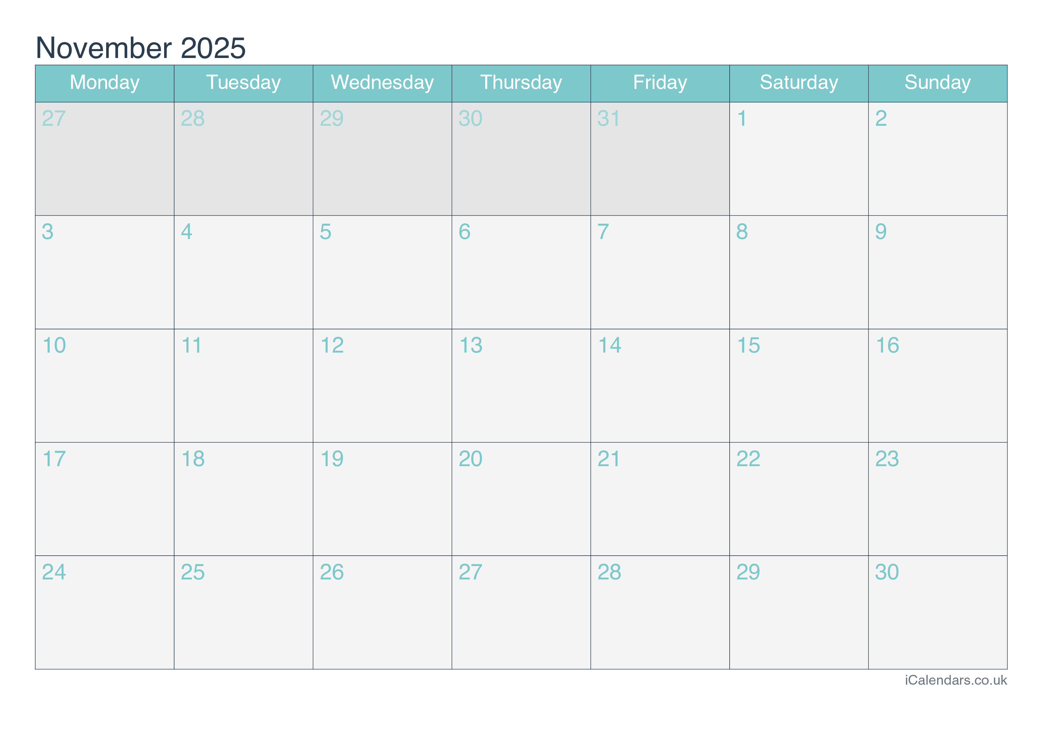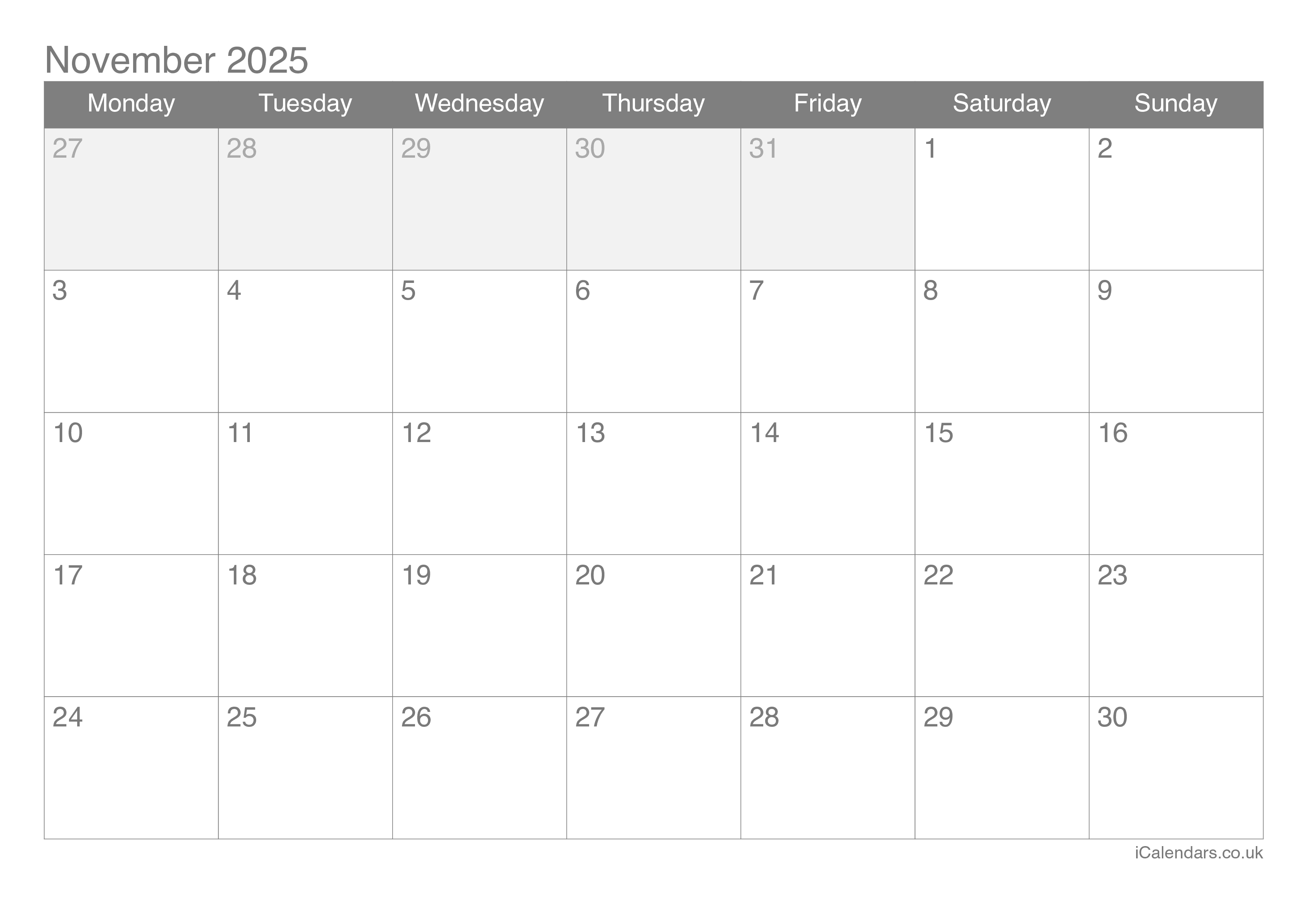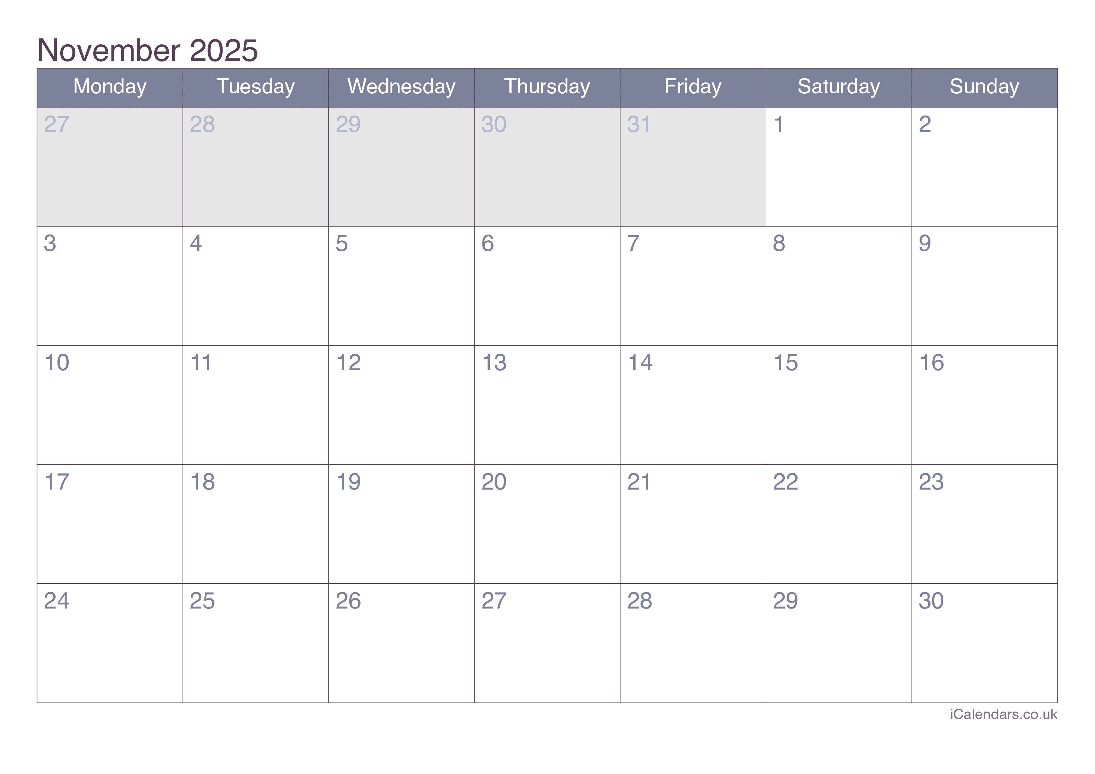November 2025 Printable Calendar