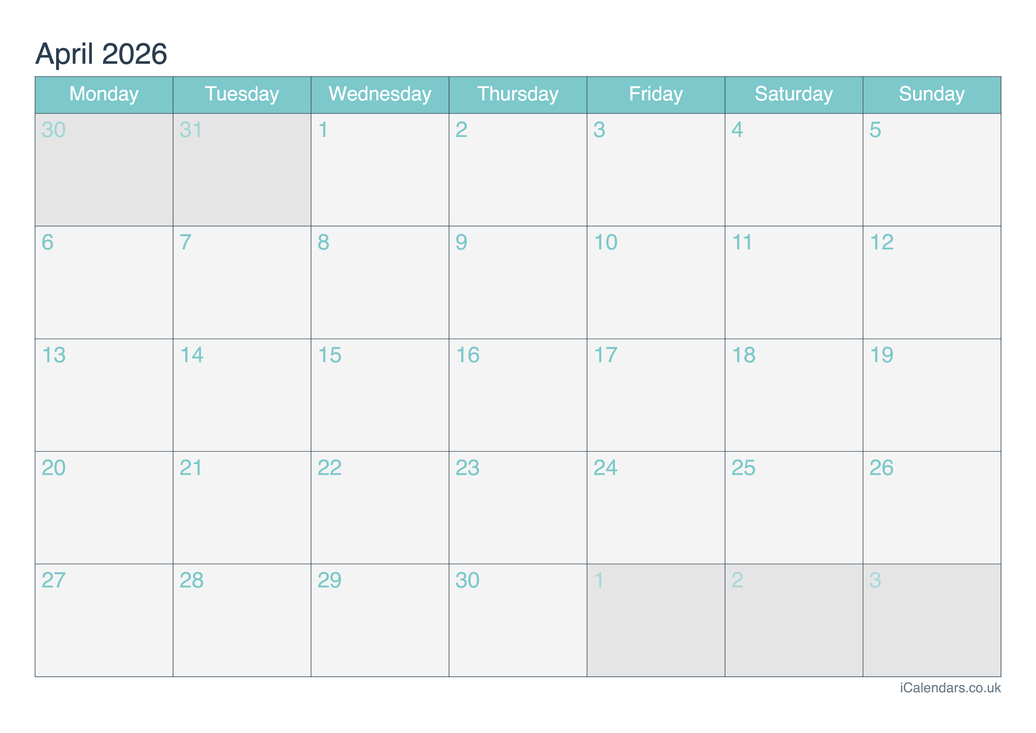 April 2026 Printable Calendar