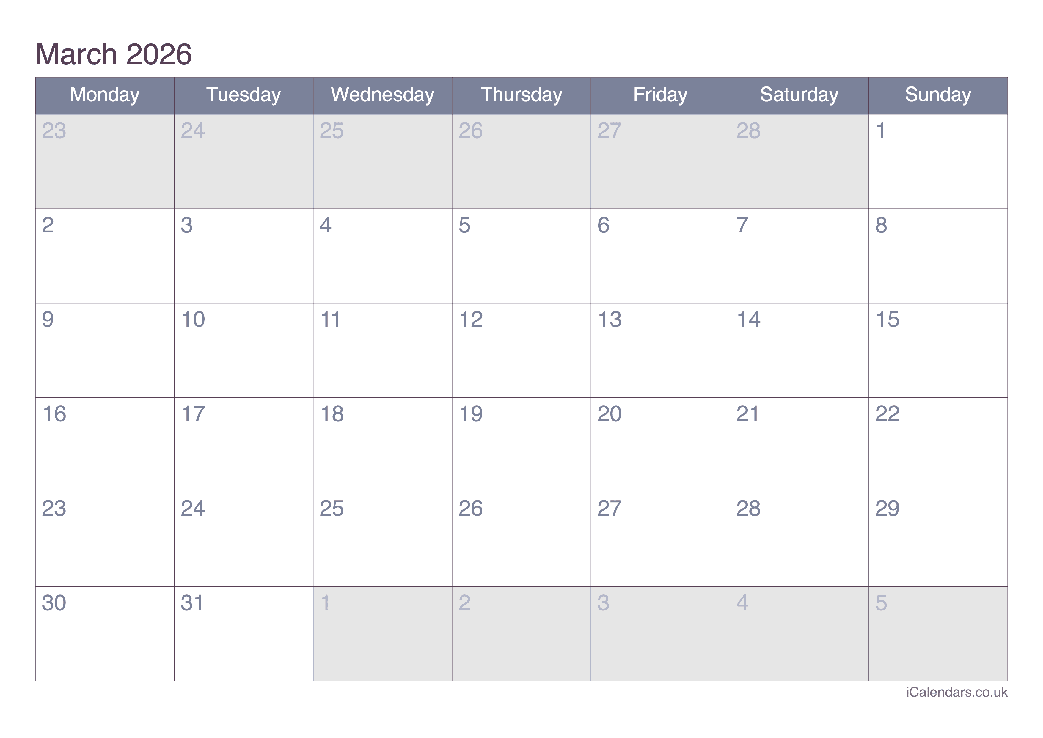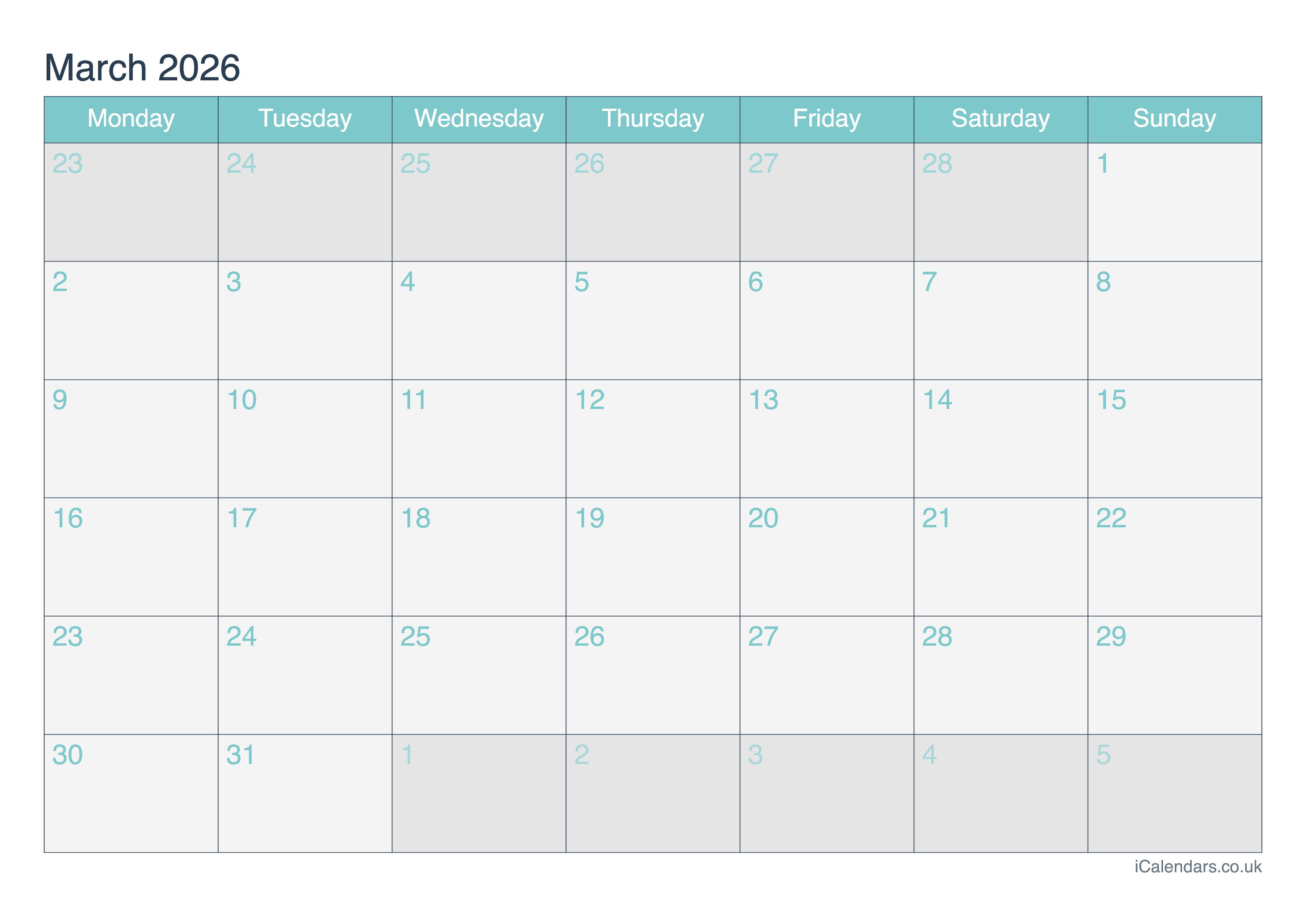 You can download and print this March 2024 calendar. It is available as an image, or in PDF and Excel formats. You can choose one of the 4 colour themes.