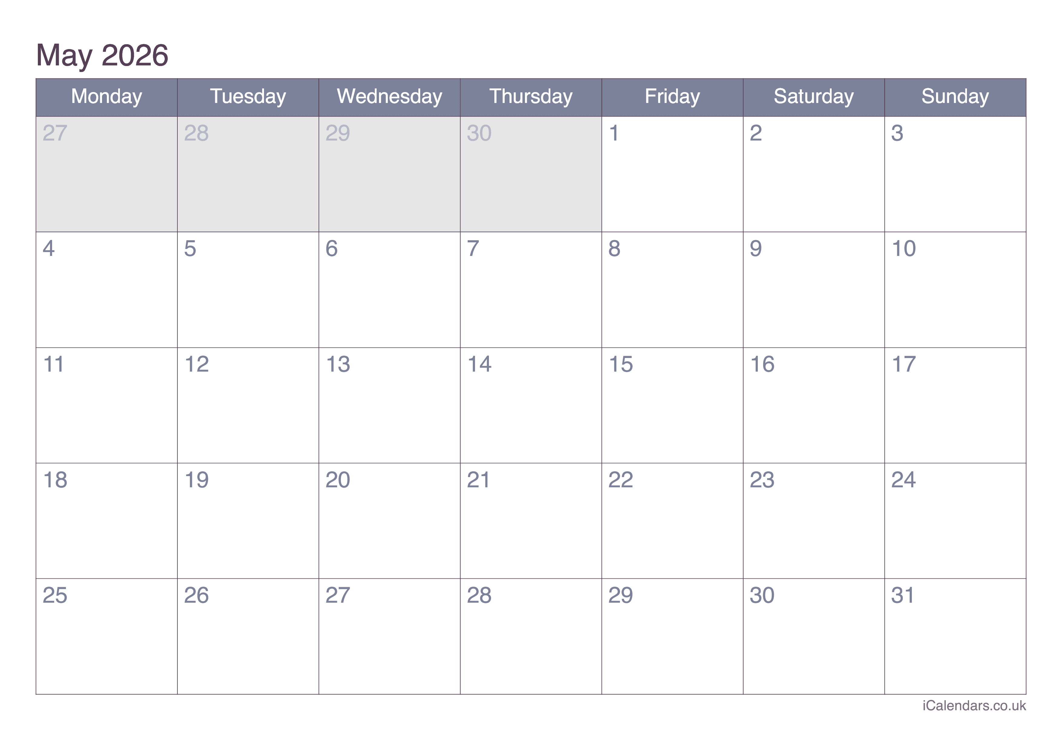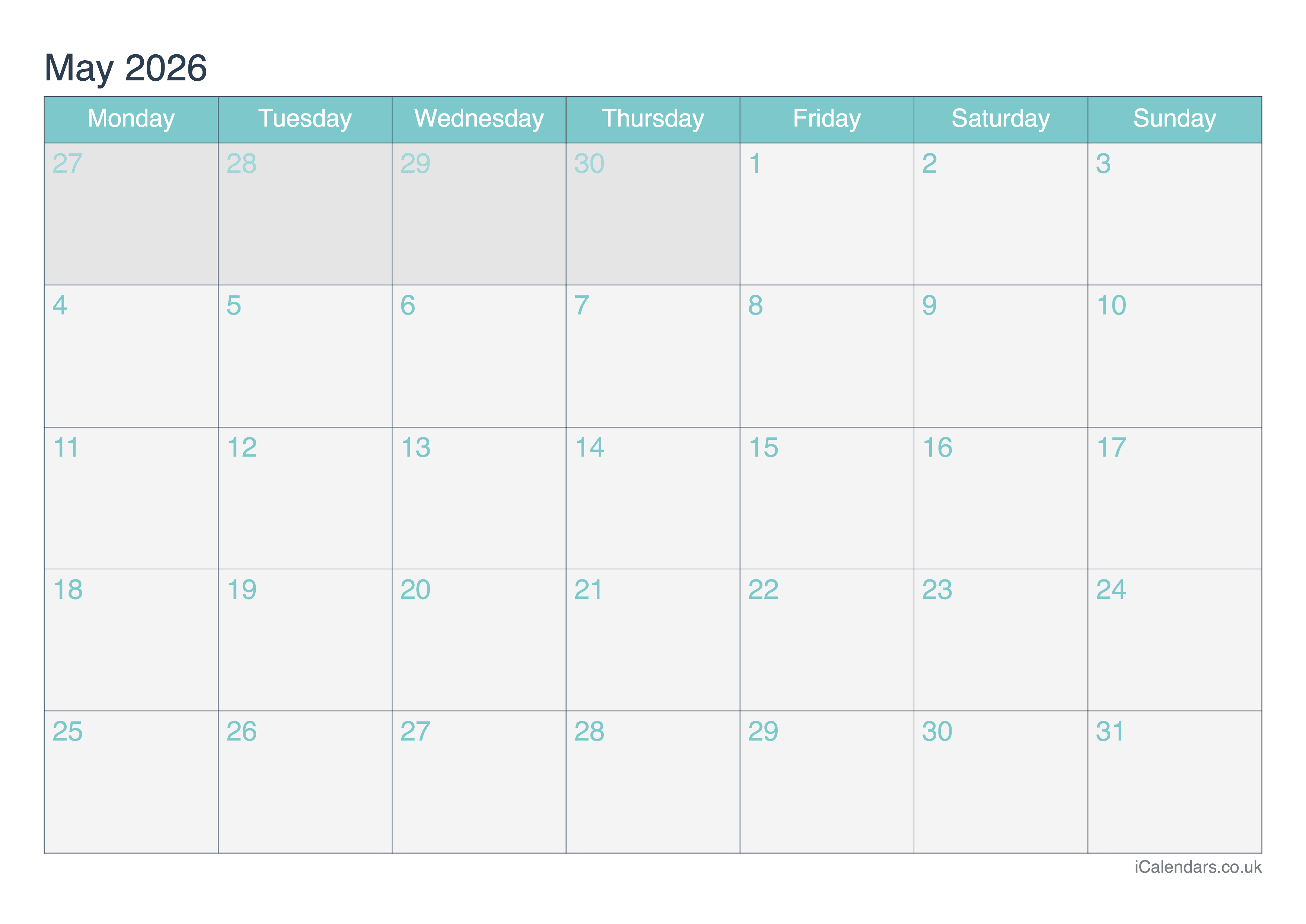 You can download and print this May 2024 calendar. It is available as an image, or in PDF and Excel formats. You can choose one of the 4 colour themes.